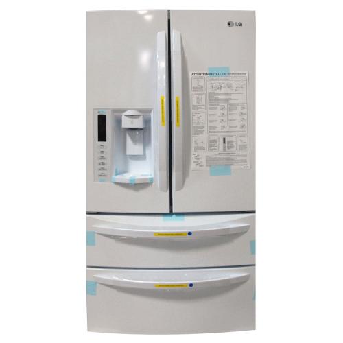 LG LMX25988SW 24.7 cu. ft. French Door Refrigerator with 4 Split Spill Protector Glass Shelves, Double Freezer Drawers, Glide N' Serve Drawer, Energy Star Qualified and External Water/Ice Dispenser: Smooth White